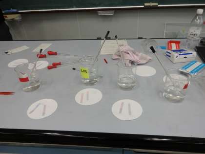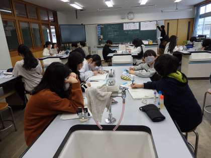 6年生の1時間目は理科の授業でした。食塩水、炭酸水、塩酸、アンモニア水の4種類の水溶液に、リトマス試験紙をつけて色が変わるかどうかの実験をしていました。(残念ながら、実験の様子が撮れませんでした)酸性、中性、アルカリ性の学習です。