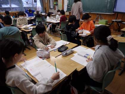 1/23 文章全体の構成を考える 公開日 2024/01/23 更新日 2024/01/23 教育活動 4年生の4時間目は国語の授業でした。班ごとに、論説文「数え方を生み出そう」の文章全体を読んで、5つのまとまりに分けていました。意味のまとまりをきちんと捉え、筆者の主張、理由、例などの内容で考えていきます。最後に、各班がまとめた結果を電子黒板に提示して、どう分けたらよいか考えました。 いいね(0)