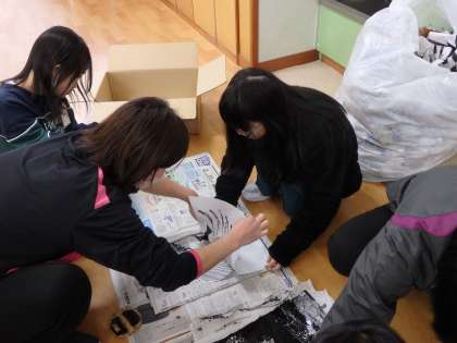 3年生の2,3時間目は図工の授業でした。紙版画を刷る作業です。インクを塗り、紙を置くのは先生が行いますが、バレンでゴシゴシこするのは子どもたちが行います。名簿順で刷っていきますが、待っている子達が興味津々といった様子でじーっと見ていました。