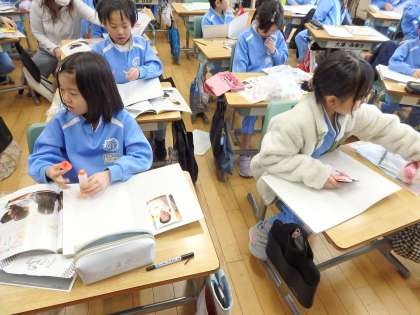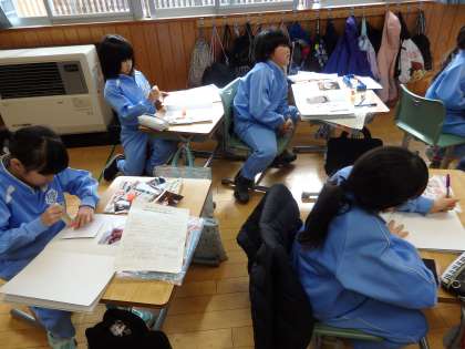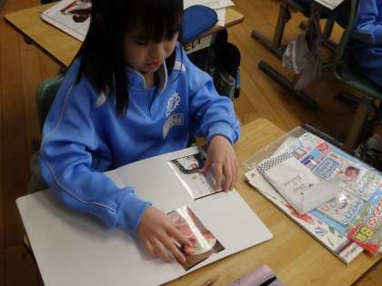 2年生の3時間目は生活の授業でした。生まれてから現在までの写真や、お家の人から書いてもらったりインタビューして書いたエピソードをもとにして、成長していく姿をまとめたの本を作ります。1時間目の今日は写真を選んで貼ったり、表紙のデザインを考えたりしました。1人1人の写真を見せてもらったり、家の人から書いてもらったエピソードを読ませていただき、ジーンとしてきました。(私も親なので・・・)