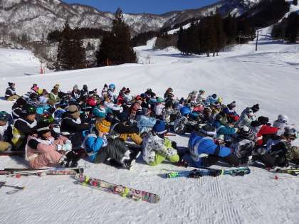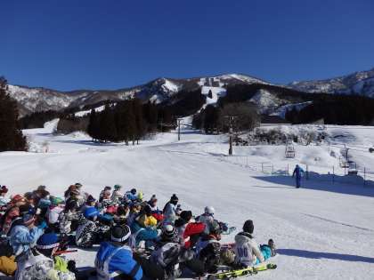 ご覧のような超が付くほどの快晴のもとでのスキー授業の始まりです。まずは開校式です。
