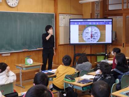 2/14 目盛りの読み方 公開日 2024/02/14 更新日 2024/02/14 教育活動 3年生の2時間目は理科の授業でした。1時間目に引き続き、重さについての学習です。台ばかりを使って、物の重さを量る学習をしていました。まずは、電子黒板に台ばかりの表示を拡大して、目盛りの読み方や目盛りが1周すると1000g=1kgになることを学習しました。その後、身の回りの者を1つ選んで、台ばかりで重さを測り、写真とともにiPadで先生に送信して、正しく目盛りが読み取れているか確認していました。 いいね(0)