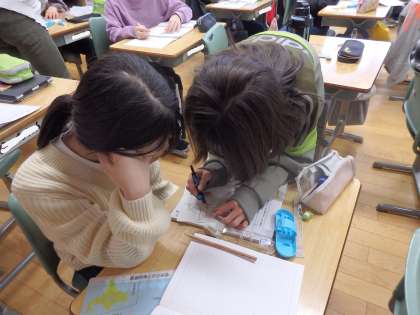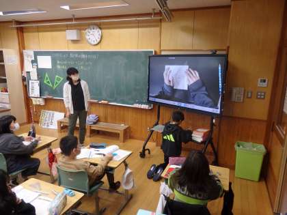 4/16 線対称の図形 公開日 2024/04/16 更新日 2024/04/16 教育活動 6年生の1時間目は算数の授業でした。いろいろな図形を線対称で描く学習をしていました。三角定規を2つ使って直角の描き方を確認しながら作図をしました。作図できた子が電子黒板で見せながら説明したり、近くの人と教え合ったりしながら学習を進めていました。 いいね(0)