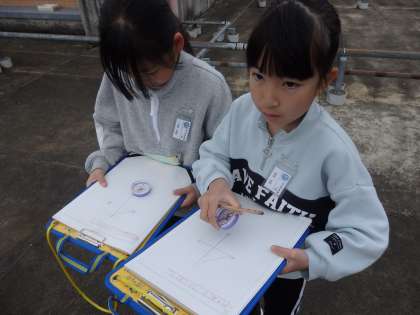 4/16 どの方角に何がある? 公開日 2024/04/16 更新日 2024/04/16 教育活動 3年生の2時間目は理科の授業でした。方位磁石の使い方と方角の学習です。屋上に上がって、五十沢を一望。方位磁石と照らし合わせながら、どの方角にどんな物があるか調べていました。 いいね(0)