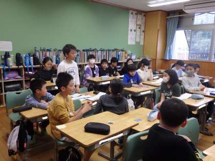 4/16 学級目標を考えよう 公開日 2024/04/16 更新日 2024/04/16 教育活動 4年生の5時間目は学活の授業でした。学級目標を考えるために、班ごとで話し合いを行っていました。「学習」「友達関係」「体づくり」という点から、班ごとで目標とする姿を話し合い、発表しました。出された意見をもとに、一言で表すキャッチフレーズを考えます。 いいね(0)