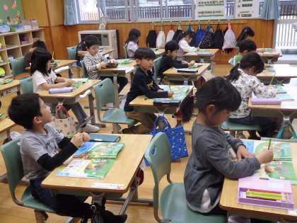 4/17 何匹いるかな? 公開日 2024/04/17 更新日 2024/04/17 教育活動 1年1組の3時間目は算数の授業でした。10までの数の学習です。教科書にウサギやリンゴ、チューリップなど、いろいろな動植物が描かれています。それぞれ何個あるのか数えました。数えるときは見落としがないように、丸で囲みながら数えました。「何匹」や「何個」などの単位もしっかり言えました。 いいね(0)