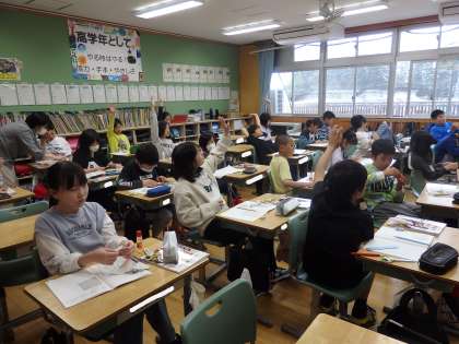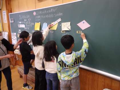4/18 対角線で割ると合同な図形は? 公開日 2024/04/18 更新日 2024/04/18 教育活動 5年生の1時間目は算数の授業でした。合同な図形の学習です。平行四辺形、台形、ひし形などの四角形を対角線で2つ、または4つに分けてできた形は合同かどうか確かめます。それぞれの図形の紙に大家苦戦を引いたり、切ったりして確かめていました。テノアゲカタガピシッとしている子がたくさんいますね。中には「自分に当てて!」と拝みながら、手を挙げている子もいました。 いいね(0)