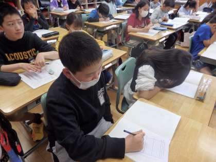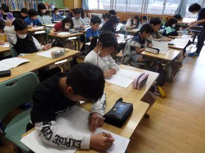 4/23 折れ線グラフを描く 公開日 2024/04/23 更新日 2024/04/23 教育活動 4年生の1時間目は理科の授業でした。昨日1時間おきに測った気温の記録を基に、折れ線グラフを描いていました。グラフを見て、どんなことに気付いたかな?そして、予想していた、「天気予報の最高気温22度」に到達する時間は的中したでしょうか? いいね(0)