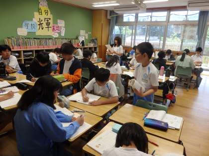 5/10 意見を比べる 公開日 2024/05/10 更新日 2024/05/10 教育活動 6年生の1時間目は国語の授業でした。「世の中の出来事を知りたいときに利用するのは、テレビかインターネットか新聞か」について、自分の考えとその理由をノートに書きました。その後、3つの意見が交流できるように、3グループを作り、考えを発表し合いました。同じ意見、違う意見に関わらず、他の人の考えを聞いて、自分の考えと比較して考えることは、学習を深めるために大切なことです。 いいね(0)