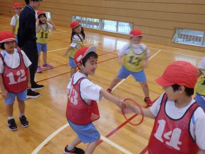 5/13 バトンパス 公開日 2024/05/13 更新日 2024/05/13 教育活動 1,2年生の3時間目は合同で体育の授業でした。あいにくの雨天でしたので、体育館でリレーのバトンパスの練習です。ラジオ体操の練習をしてから始めました。前回の練習では、普通の棒状のバトンで練習しましたが、バトンパスをよりスムーズに行うためにリング状のバトンに変更しました。その受け渡しの練習をしました。 いいね(0)