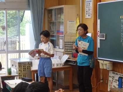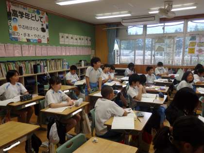 5年生の1時間目は国語の授業でした。今日から「インターネットの冒険」という評論文の学習です。まずは、タイトルから「どんな学習をするのか」「インターネットの冒険とはどういうことか」を考え、意見を出し合いました。