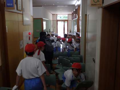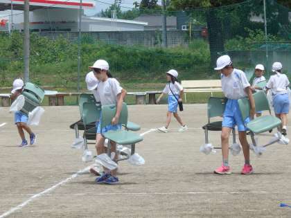 グラウンド〜教室へ戻るときも、6年生が1年生の椅子を運んでくれました。6年生が大活躍です。さすが!