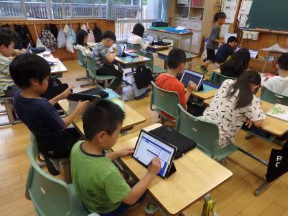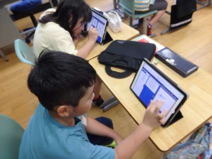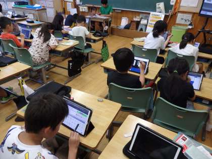 2年生の5時間目は国語の授業でした。漢字の学習でドリルを進めていました。やり終わった子は、iPadのドリルパークというアプリで個別に学習を進めていきました。