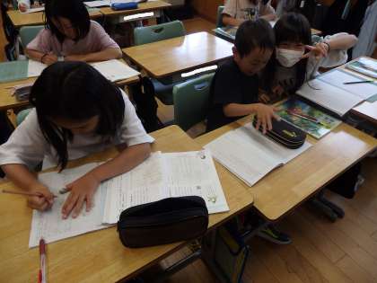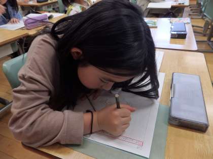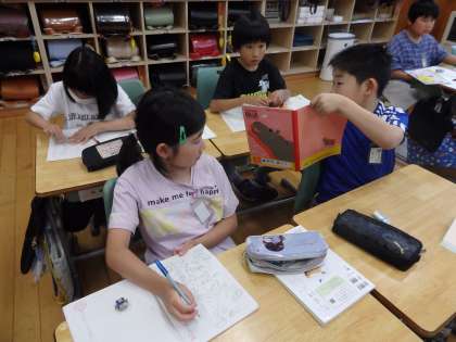 5/17 「わたし」の説明文 公開日 2024/05/17 更新日 2024/05/17 教育活動 3年生の3時間目は国語の授業でした。「わたし」についての説明文を書く単元の学習です。まずは、自分についてみんなに伝いたいことを書き出すためにイメージマップを描きました。「「わたし」を中心に、「夢」「食べ物」「好きなこと」「家族」など、ことばをつなげてマップを広げていきました。ノートにビッシリとマップが広がっている子がたくさんいました。 いいね(0)