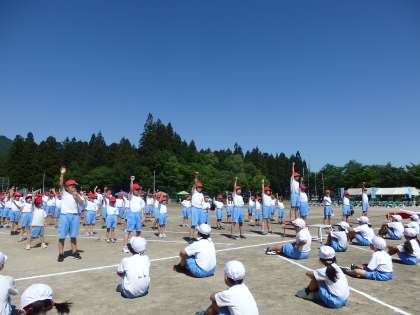 開会式の後はエール交換です。まずは赤組から白組へエールです。