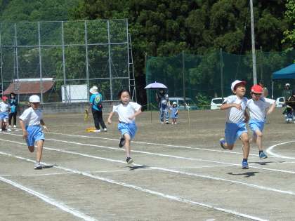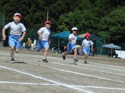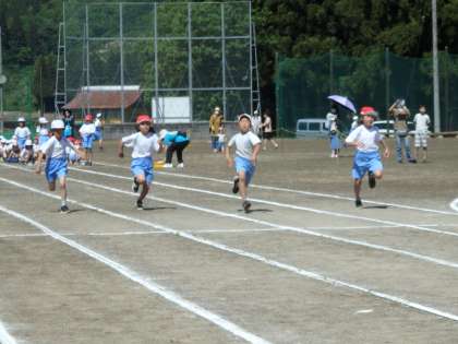 最初の競技は3,4年生の80m走です。まずは3年生からです。
