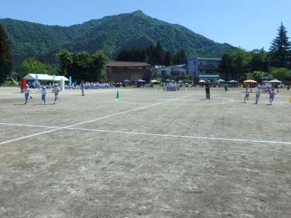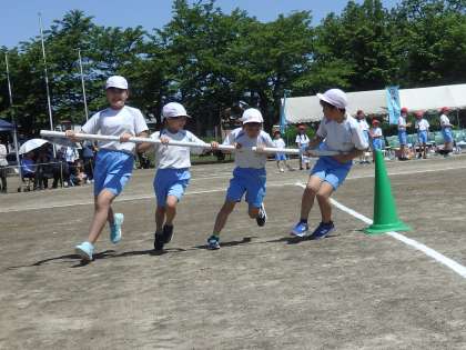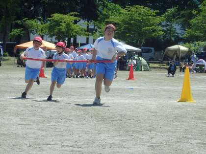 3,4年生による「台風の目」です。誰が棒のどこを持つかも作戦の一つですね。