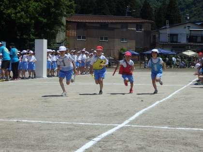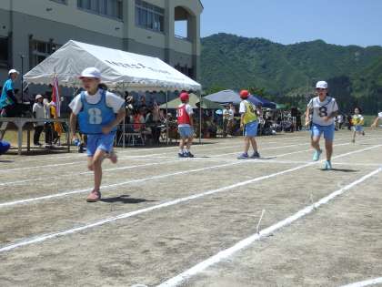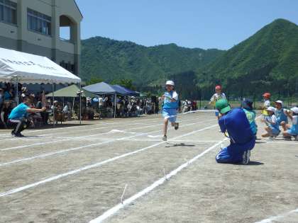 リレーの最初は3,4年生のリレーです。リレーは1人100mを走ります。