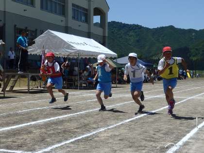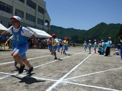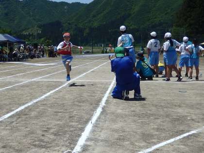 競技の最後は5,6年生のリレーです。これもまた、抜いたり抜かれたりの大接戦でした。
