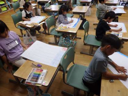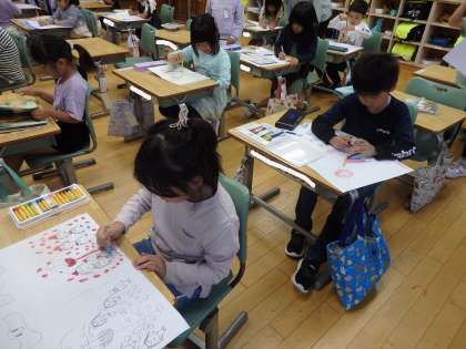 5/21 運動会の思い出 公開日 2024/05/21 更新日 2024/05/21 教育活動 1年1組の5時間目は学活の授業でした。運動会の思い出を画用紙に描きました。50m走や玉入れ、リレーをしている場面をクレヨンで上手に描いていました。 いいね(0)