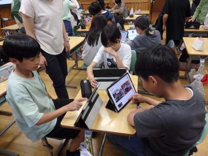 5/21 佐渡クイズ完成 公開日 2024/05/21 更新日 2024/05/21 教育活動 6年生の6時間目は総合の授業でした。食べ物、トキ、ジェットフォイル、たらい舟、など佐渡について調べて分かったことをもとに、班ごとでクイズをiPadの「Keynote」というプレゼンアプリを使って作ってきましたが、今日で完成です。「へえ〜」と机を叩きなるほどの問題ばかりです。 いいね(0)