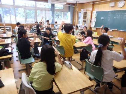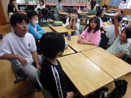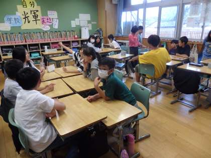 6年生の1時間目は総合の授業でした。修学旅行に向けて、「透視船体験」や「たらい舟体験」のグループ分けをしていました。その後、活動班の班決めと班ごとの役割分担を話し合って決めていました。