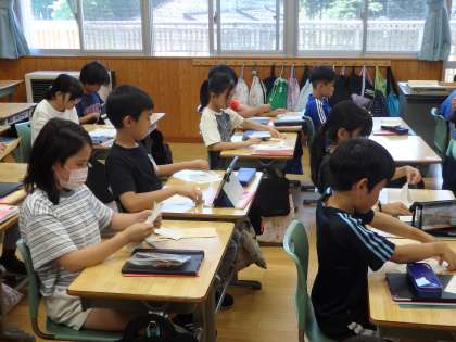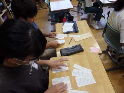 5/22 「終わり」が確定 公開日 2024/05/22 更新日 2024/05/22 教育活動 4年生の3時間目は国語の授業でした。「ヤドカリとイソギンチャク」の授業です。段落ごとでバラバラにしたカードを、内容を考えながら正しく並べてきましたが、「終わり」の部分が確定しました。一人一人の意見をiPadのオクリンクで集約して確認していました。しっかりと内容を読み込んでいて「〜という文があるから」という理由もきちんと考えていました。 いいね(0)