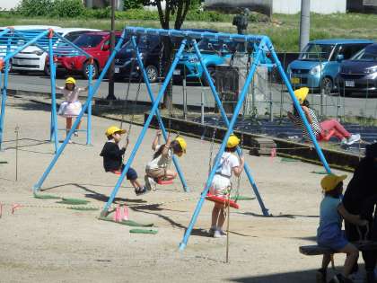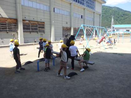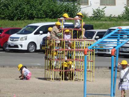 5/22 安全に遊ぶために 公開日 2024/05/22 更新日 2024/05/22 教育活動 1年生は1,2組合同で5時間目に遊具の使い方を勉強しました。先生の注意事項の話を聞いた後は、1,2組みんなで仲良く遊びました。「か〜わって。」「いいよ」という声が聞こえてきました。 いいね(0)