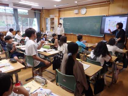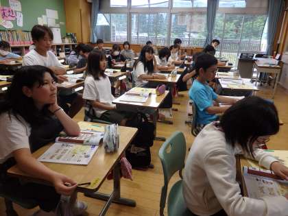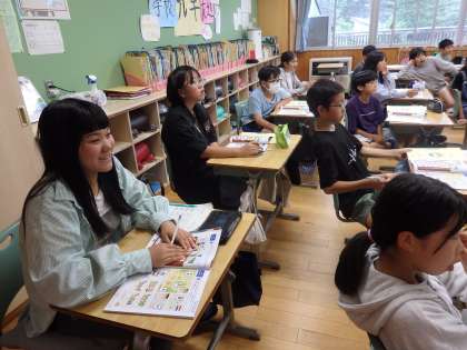 6年生の3時間目は国際科の授業でした。南魚沼市にあるいろいろな施設名についての英語を学習しました。そして、その中から自分が好きな場所を一つ選び、そこで何ができるのかを考えました。