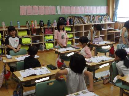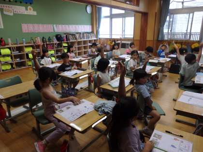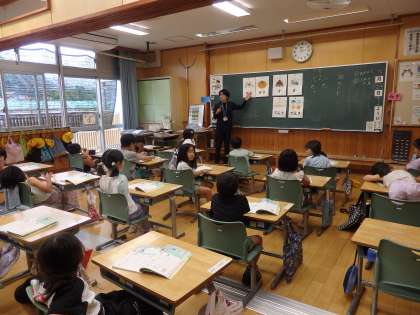 5/24 「な」のつく言葉 公開日 2024/05/24 更新日 2024/05/24 教育活動 1年2組の3時間目は国語の授業でした。今日は濁点のつく言葉とひらがなの「な」を学習しました。「な」の学習では、まず「な」の付くことばを考えました。夏、納豆、奈良県などたくさんの意見が出ました。手を挙げた子が全員立って、1人ずつ発表していきましたが、発表している子に体を向けて聞くことができました。 いいね(0)