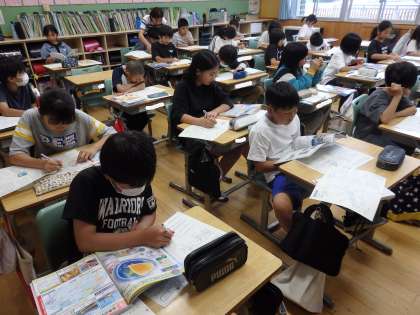 5/24 自習でしたが 公開日 2024/05/24 更新日 2024/05/24 教育活動 5年生の4時間目は社会の授業でした。担当の先生が出張で不在のため、プリント学習でした。「世界の地理」についてのプリントで、資料集を見ながら集中して取り組んでいました。 いいね(0)
