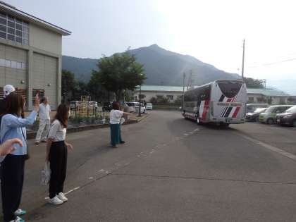 6時20分、バスが出発しました。保護者の皆様、見送りありがとうございました。