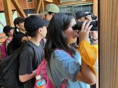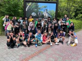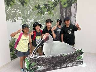 6年生はトキの森公園に到着しました。運がよければ、間近で美しいトキの姿を見ることができます。