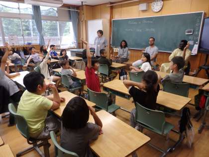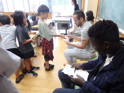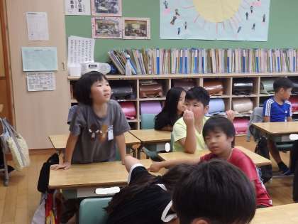 6/7 3年生 国際交流会 公開日 2024/06/07 更新日 2024/06/07 国際科 3年生の3時間目は国際交流会でした。国際大学の学生から教室来てもらい、自分で作った名刺を渡しながら英語で自己紹介をしました。好きな色を言ってから、相手にも好きな色を尋ねます。後半は質問タイム。好きな動物、行ってみたい外国、子どもがよくやる遊びなど、たくさんの質問が出ました。 いいね(0)