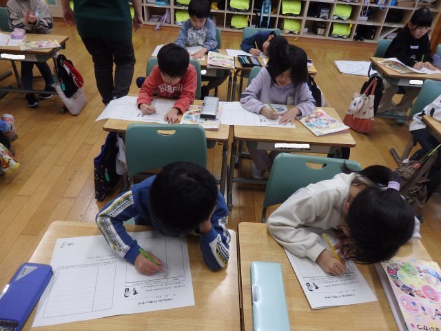 1/8 家の仕事って何がある? 公開日 2025/01/08 更新日 2025/01/08 教育活動 1年1組の5時間目は生活の授業でした。「ありがとうがいっぱい」という学習です。教科書に載っている写真や自分の家の様子を思い浮かべて、家の中の仕事を「誰が」「どんなことをしているのか」考え、プリントに書き出していきました。たくさん書けた子が何人もいました。 +6 いいね(0)