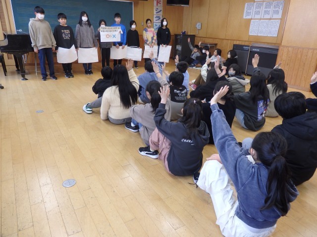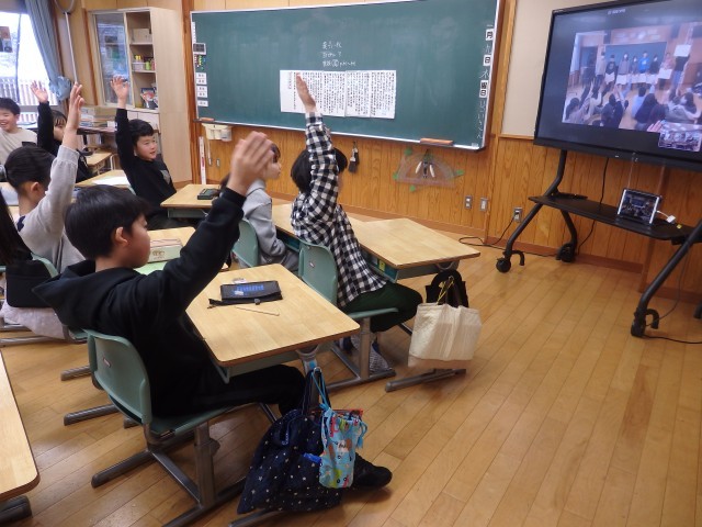 今日は児童朝会でしたが、始業式と同様、オンラインで行いました。運営委員会と保健委員会、6年生だけが音楽室に集まり、他の教室とはzoomでつなげての朝会です。保健委員会が「インフルエンザや感染症予防」についてのクイズを出題しました。