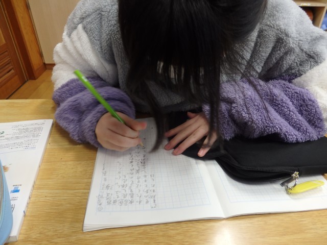 1/15 季節の良さを表そう 公開日 2025/01/15 更新日 2025/01/15 教育活動 5年生の2時間目は国語の授業でした。詩の学習です。「季節の良さを表そう」と題して詩を作っていました。夏を選んだ子が多かったようです。「夏はプール」「夏は海」「夏は空」などから始めて、それに続ける詩を考えていました。「夏は天色」と書き出した子がいました。「天色(あまいろ)」とは「晴天の澄んだ空のような鮮やかな青色」なのだそうです。 +5 いいね(0)
