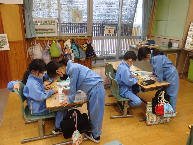 1/17 難しそうだったけど・・・ 公開日 2025/01/17 更新日 2025/01/17 教育活動 1年2組の1時間目は算数の授業でした。「形をつくってみよう」の学習です。三角形を使って、教科書に載っている風車の形をどうやって作ったらいいのか考え、取り組んでいました。早くできた人はミニティーチャーとして、困っている人を助けに行きます。「難しそうだったけど、やってみたら簡単!」という声があり、簡単な方法を説明していました。 +4 いいね(0)