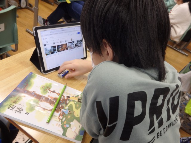 5年生の1時間目は国語の授業でした。「弱いロボットだからできること」の学習です。インターネットで最先端のロボットを調べ、そのロボットの画像で何をするロボットなのかクイズを作りました。オクリンクで先生に提出し、1人1人が作ったクイズを解いていきました。