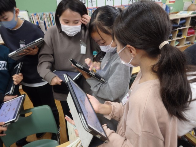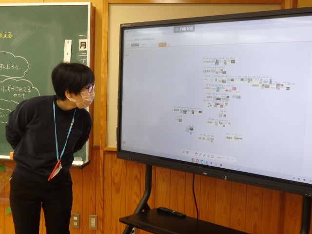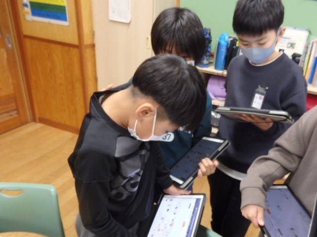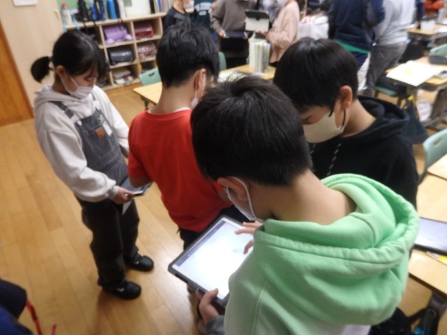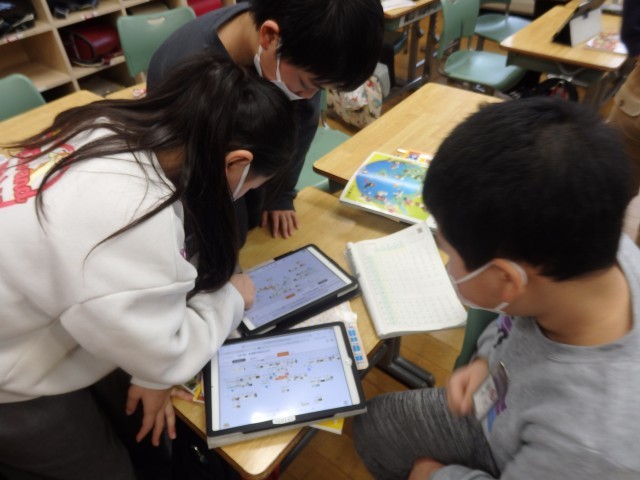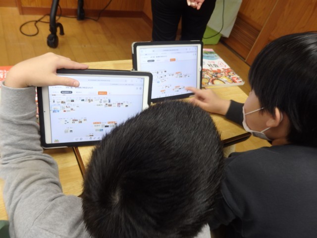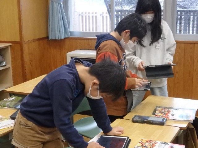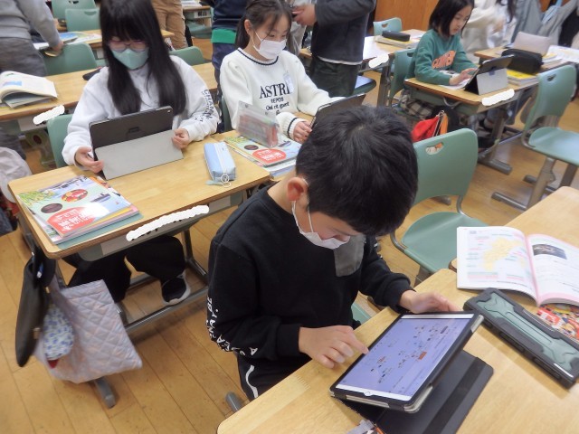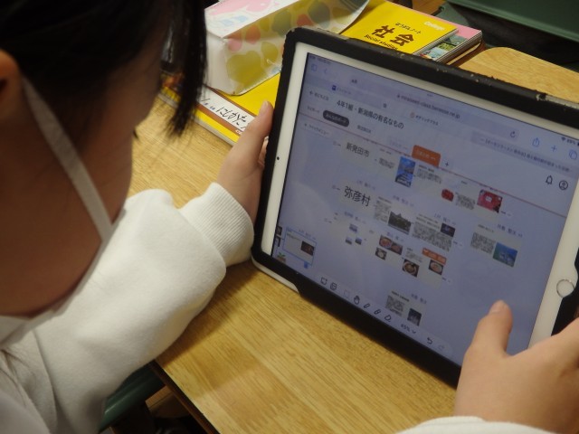 4年生の1時間目は社会の授業でした。前回の授業で出てきた燕市、魚沼市、新潟市など9市以外に、県内にはどんな市があるのか調べ、iPadのオクリンクプラスというアプリでカードにまとめました。まとめたら、みんなで共有します。自分と同じ市について調べたことカードを見せ合い、話し合い、お互いのカードをiPadの画面上で1つにまとめます。9枚目、10枚目の写真で分かりますでしょうか。先生の手は入らず、子ども達だけでまとめたものになります。