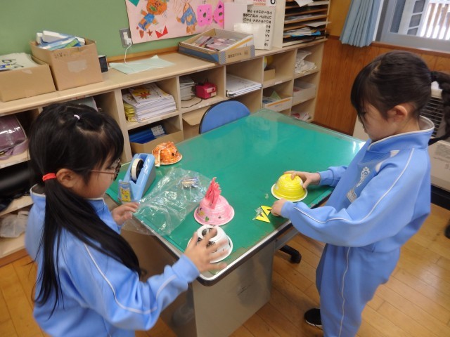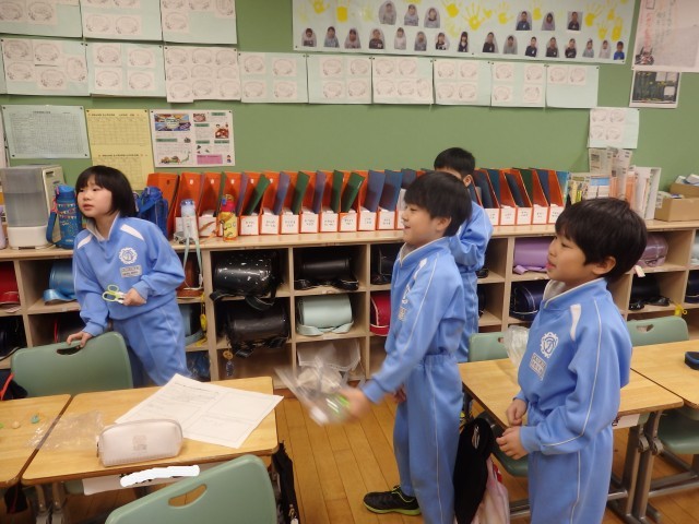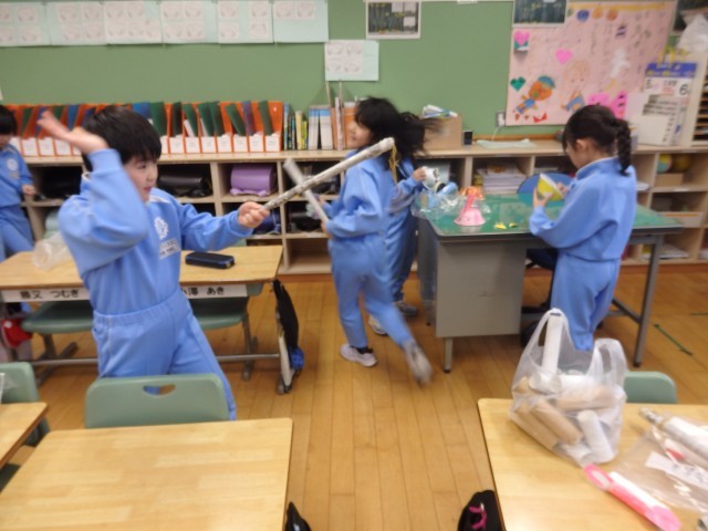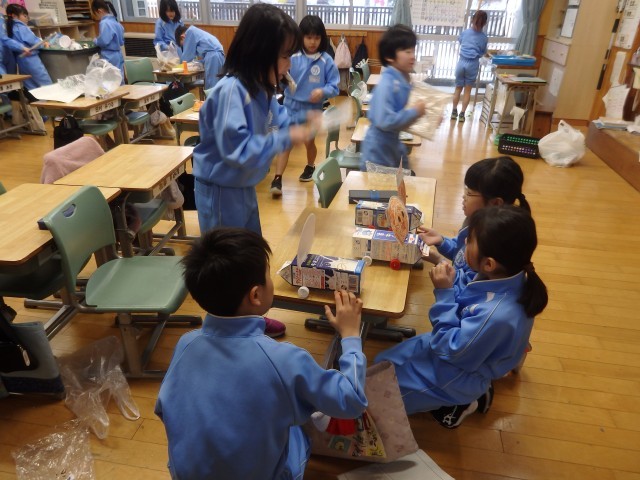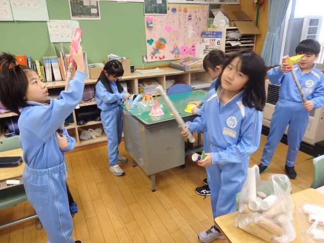 1/21 おもちゃランド 公開日 2025/01/21 更新日 2025/01/21 教育活動 2年生の2時間目は生活の授業でした。手作りおもちゃで遊べる2年生のテーマパークを作っていますが、今日はおもちゃの試してみたり、必要なところを手直ししたりしていました。みんな、楽しみながらも、「うまくできるかな?」と目は集中していますね。 +7 いいね(0)