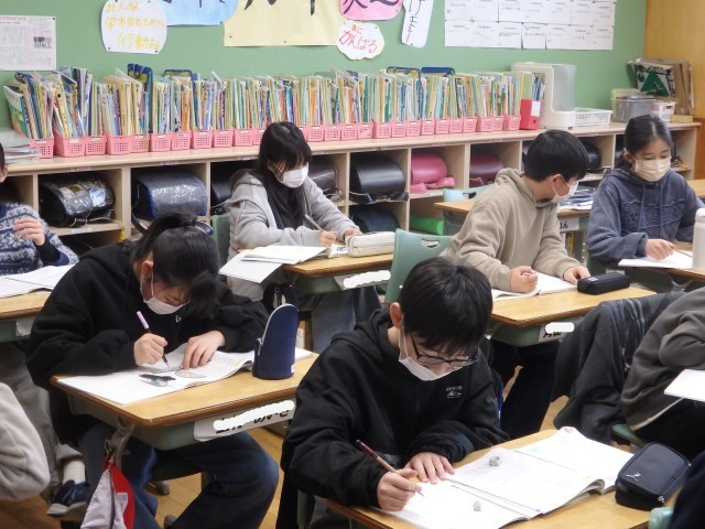 1/21 6年間のまとめ 公開日 2025/01/21 更新日 2025/01/21 教育活動 6年生の3時間目は算数の授業でした。6年間のまとめの問題に取り組んでいました。知恵を出し合ったり、教え合ったりしながら問題を解いていました。とても集中して取り組んでいて、さすが6年生!という感じでした。 +5 いいね(0)