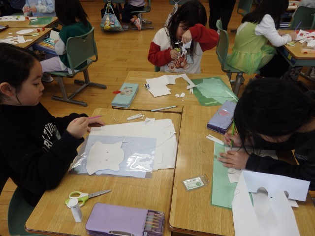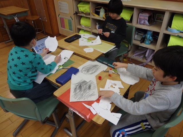 1/23 ペットをつくろう 公開日 2025/01/23 更新日 2025/01/23 教育活動 1年1組の5時間目は図工の授業でした。紙版画でペットを作っていました。紙版画ですので、身体や顔のパーツを切って作っていきます。上手にハサミを使って作っていました。 +7 いいね(0)