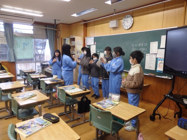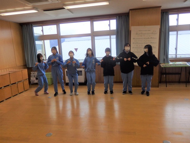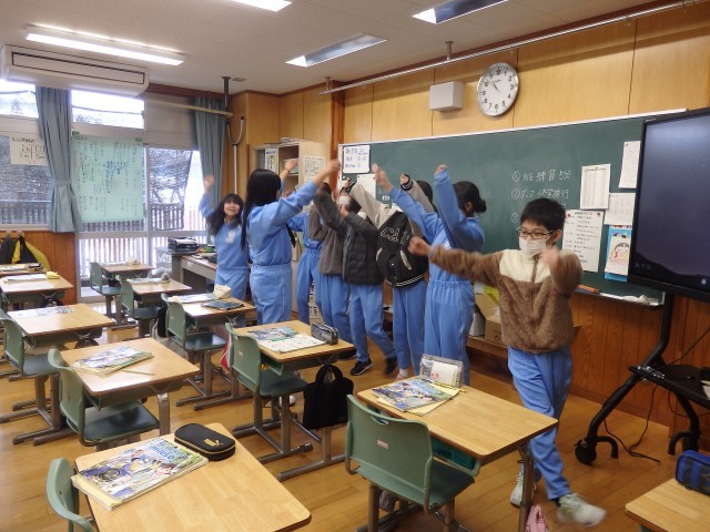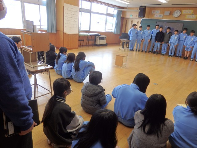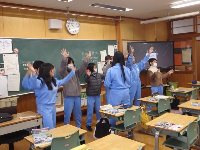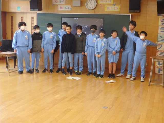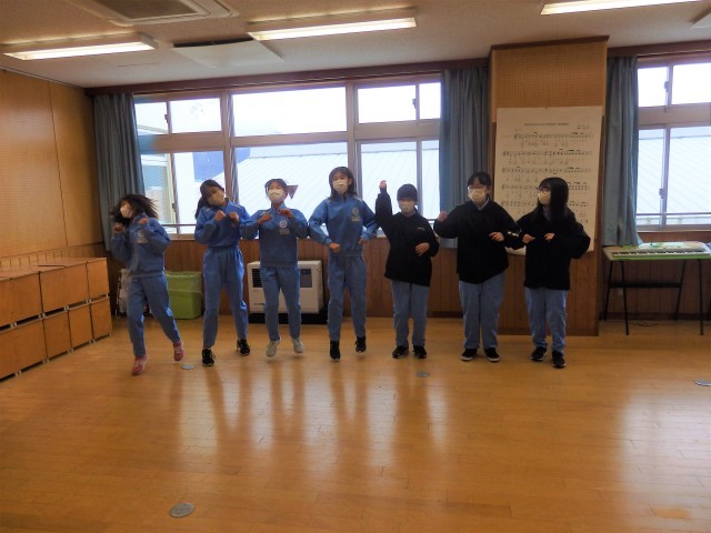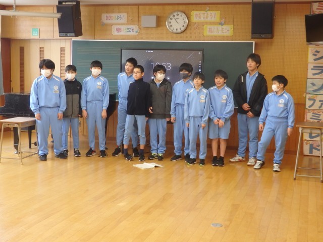 6年生の3時間目は国際科の授業でした。6年間の思い出として、修学旅行とダンス大会に分かれて英語で他校に向けて紹介をします。今日はチームごとで話し合いながら、発表内容に合った動きを考えていました。最後に各チームの発表を動画で撮影しました。