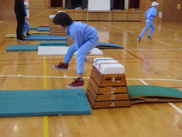 1/24 いろいろな技にも挑戦 公開日 2025/01/24 更新日 2025/01/24 教育活動 4年生の3時間目は体育の授業でした。跳び箱の学習です。今日は5段と8段の横向きも設置しました。開脚跳びだけでなく、閉脚跳びや両足飛び越えといった技にも挑戦していました。 +7 いいね(0)