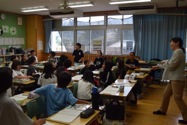 初めて対面する先生ですが、とても親しみやすく楽しい授業やお話、そして、小さなことでも大きく褒めてくださるので、すっかり打ち解け、楽しく集中して授業ができたようです。対話の場面や自分の考えを伝える場面もいきいきとしていた姿が印象的でした。
