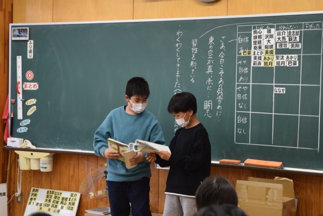 5年生が国語「大造じいさんとがん」の読み取りをしていました。今日は、 「自信度」を使って考えの交流をしていました。