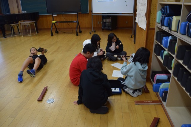 「トミオカホワイト美術館」での4年生の交流とは別に、「グループAB」の方々は各校を回ってコンサートをしてくださいました。1~3年の回と5,6年の回です。発達段階に合わせて選曲したり、鑑賞の楽しさを教えてくださるポイントをクイズやお話で伝えてくださったりする、とても素敵なプログラムでした。毎年こうして素晴らしい生の音楽に触れることができる五十沢小学校の子どもたちは幸せです。
