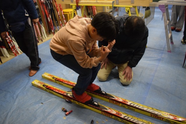 6年生が南魚沼市親善スキー大会に出場し活躍しています。そのため、より速く滑るためにワックススキーを使用する児童もいます。クロスカントリースキーのワックスは、速く滑るためだけでなくスキーコントロールをするために、制御することを目的としたワックスもあります。ワックスの専門家、スポーツショップの講師の方にお越しいただき、一人一人に合ったワックスを塗る範囲の設定をしていただきました。競技のクロスカントリースキーは、奥深いと感じました。