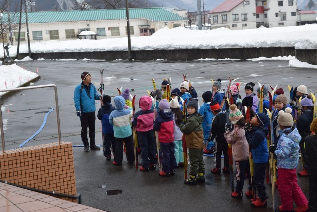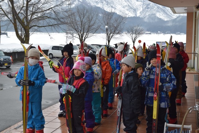 今日からは、雪の上でさっそく滑りました。ストックは使わず、板に体重をのせ、リズミカルに動かすことで進みます。子どもたちは考えもせず、自然に歩き出し、いつの間にか板を滑らせていました。さすがだなぁ。